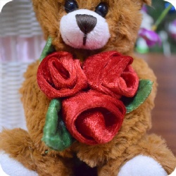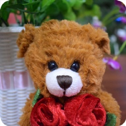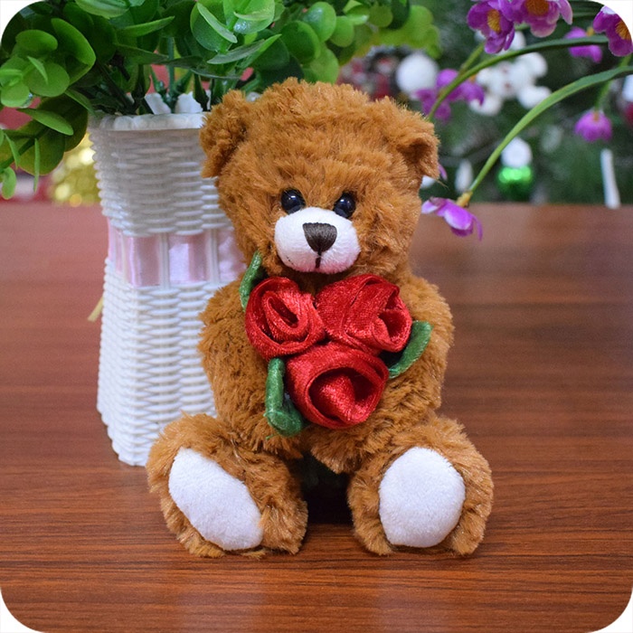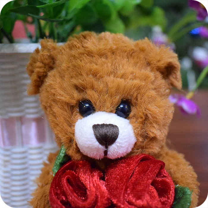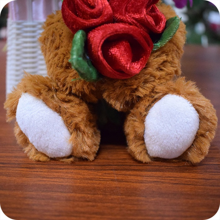 1. 6 inches plush bear with rose, surface washable